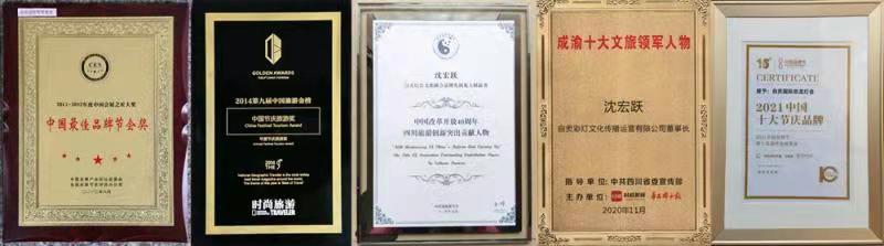 2017年7月,自貢燈會在第六屆中國民族節(jié)慶峰會暨“2017中國優(yōu)秀民族節(jié)慶”評選活動中榮獲“最具國際影響力”大獎(jiǎng),公司總經(jīng)理、自貢燈會總策劃師沈宏躍獲“2017年度優(yōu)秀節(jié)慶人物”殊榮。