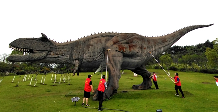 活動中,黨員干部、入黨積極分子充分發(fā)揮不怕臟、不怕累的精神,在城市灑水車的協(xié)助下,利用抹布、拖把、洗潔精等工具,對東鹽都大道兩旁多處恐龍仿真亮化景觀進(jìn)行清洗。在大家的共同努力下,恐龍仿真景觀面貌煥然一新。此次主題黨日活動,充分發(fā)揮基層黨組織和黨員干部珍惜環(huán)境、愛護(hù)環(huán)境、保護(hù)環(huán)境的意識模范帶頭作用,讓黨員成為普通群眾的標(biāo)桿,進(jìn)而有效發(fā)動群眾參與到保護(hù)環(huán)境衛(wèi)生整治中來。