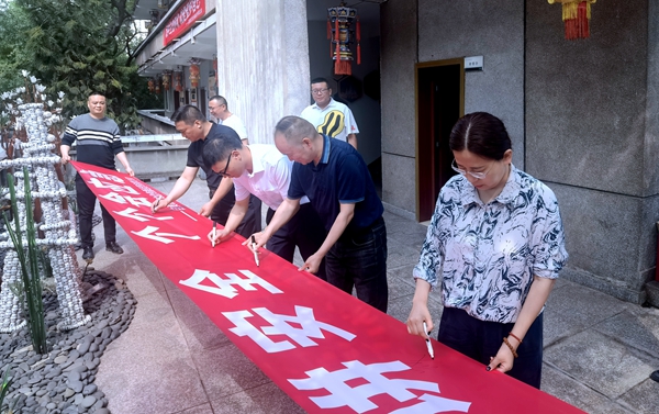 最后大家在“個(gè)個(gè)講安全 人人會(huì)應(yīng)急”活動(dòng)條幅上簽字。