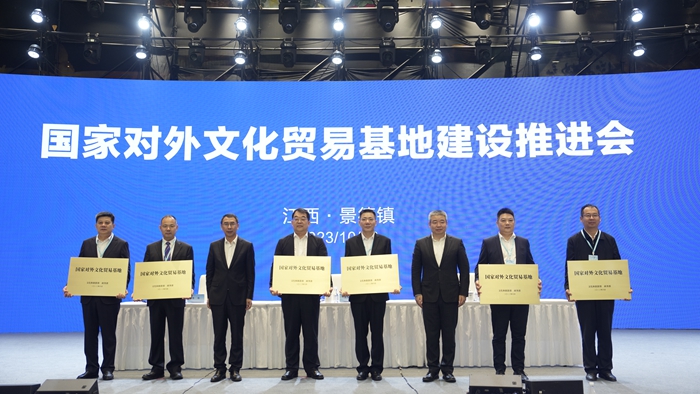 10月19日上午,國家對外文化貿(mào)易基地建設推進會在江西景德鎮(zhèn)召開。自貢市人民政府黨組成員、副市長周耘,自貢市文化廣播電視和旅游局總規(guī)劃師蹇華、自貢市國有資本投資運營集團有限公司副總經(jīng)理何磊、自貢彩燈文化傳播運營有限公司副總經(jīng)理錢虹參加了授牌儀式。