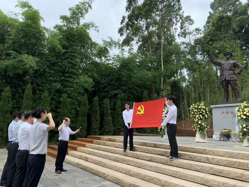 2019年6月30日上午,在支部的精心組織下,5名共產(chǎn)黨員、5名入黨積極分子、2名入黨申請人,統(tǒng)一著白色上衣、黑色長褲,黨員胸佩黨徽,準(zhǔn)時(shí)來到革命先烈—盧德銘故居。懷著對先烈崇敬和緬懷之情,他們首先瞻仰了烈士故居,緬懷了盧德明等革命先烈的生平事跡和豐功偉績。大家深深感動:沒有革命先烈舍小家、為大家的英雄情懷和為人民謀幸福不惜拋頭顱、灑熱血的英雄壯舉,就不可能打倒反動派、建立新中國。我們今天的幸福生活是革命先烈們用鮮血和生命換來的,是來之不易的,我們必須熱愛和珍惜;同時(shí),做為新時(shí)期的中國共產(chǎn)黨黨員,我們要時(shí)刻牢記黨的性質(zhì)和宗旨,要做到不忘初心、牢記使命,吃苦在前,享受在后,立足崗位、敬業(yè)奉獻(xiàn),為國家的富強(qiáng)和民族的復(fù)興努力工作,拼搏進(jìn)取。